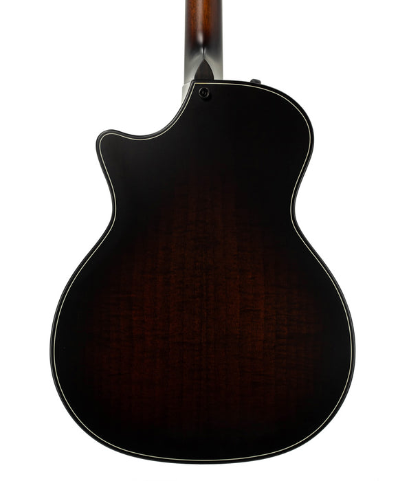 We're thrilled to introduce the Builder's Edition 314ce LTD, a part of Taylor's 50th anniversary limited-edition 300 Series. Featuring Urban Ash back and sides, a Sitka spruce top, and hand-pleasing details-a beveled armrest and cutaway, chamfered body edges, and Curve Wing bridge-this guitar is a player's delight. The ash showcases a deep tobacco color, bringing out the wood grain richness. Choose from a natural or Kona burst top, accented with a firestripe pickguard. In both cases, the body sports a Silent Satin finish. Appointments include Compass inlays, silver side dots, black/Ivoroid edge trim, Italian acrylic rosette, and Gotoh 510 tuners in Antique Gold. The guitar features ebony bridge pins with gold acrylic dots and a 50th-anniversary label. It comes with ES2 electronics.