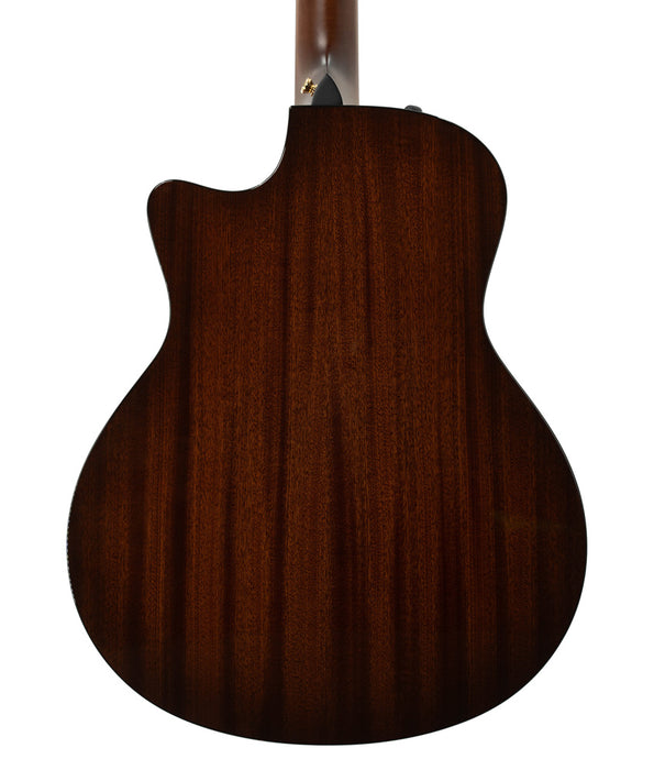 Ideal for players who want to explore new sonic territory, singers with lower vocal ranges or musicians who enjoy a detuned acoustic sound, baritone guitars offer rich, deep tones that bridge the gap between standard and bass guitars. Taylor has a history of crafting innovative baritone guitars. The 50th Anniversary 316ce Baritone-6 LTD continues that tradition. This gloss-finished cutaway Grand Symphony features lower B tuning and a 27" scale length. Its slender neck with normal string tension ensures a familiar, finger-friendly Taylor playing experience. Solid sapele back and sides are paired with a torrefied Sitka spruce top to produce deep lows, clear highs and a full, meaty midrange, with an added touch of played-in warmth. Our special baritone bracing pattern channels a powerful bass response while maintaining clarity and balance across the frequency spectrum. Visual highlights include Gemstone inlays, a firestripe pickguard, black and white edge trim, and a full-guitar shaded edgeburst. Commemorating Taylor's 50th anniversary, this limited-edition acoustic-electric also features Taylor gold tuners, gold-dotted ebony bridge pins, and a celebratory interior label. It ships with ES2 electronics and a deluxe hardshell case.