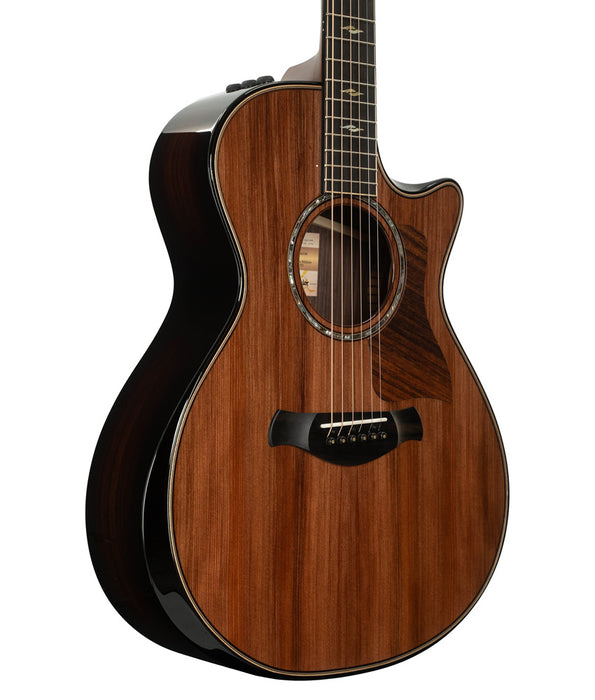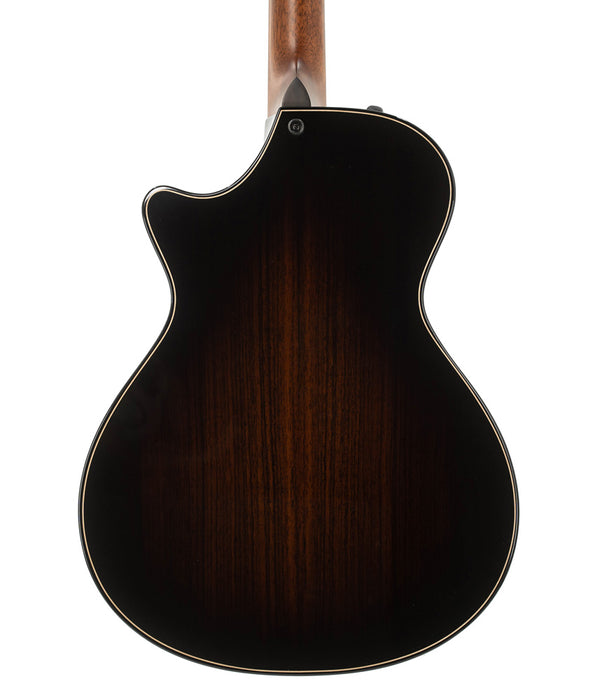 Taylor's first 50th Anniversary Grand Concert, the Builder's Edition 812ce LTD features a premium tonewood pairing, celebratory appointments and a suite of hand-pleasing refinements. Indian rosewood, revered for its rich bass, bell-like trebles and lush overtones, pairs beautifully with sinker redwood, a wood reclaimed from northern California rivers that blends cedar-like warmth and touch sensitivity with a wide dynamic range. V-Class bracing levels up volume and sustain while improving intonation all the way up the neck. Builder's Edition ergonomic enhancements include a beveled armrest, cutaway, chamfered edges and a contoured Curve Wing bridge. Together with its 24-7/8" scale length that makes fretting easier and adds a slinkier feel on the strings, these enhancements raise this Grand Concert's levels of comfort and playability to new heights. Visual details include an abalone rosette with rosewood/maple/black purfling around a rosewood-bound soundhole; black/maple/rosewood top purfling; an Indian rosewood pickguard; Element fretboard and peghead inlays in gold-hued mother-of-pearl; and maple purfling around the back, fretboard and peghead. A Kona edgeburst on the back and sides presents a dusky visual vibe while a gloss finish highlights the guitar's beautifully sculpted contours. Ebony bridge pins with gold acrylic dots, Gotoh 510 antique gold tuners and a commemorative label round out the special anniversary touches.