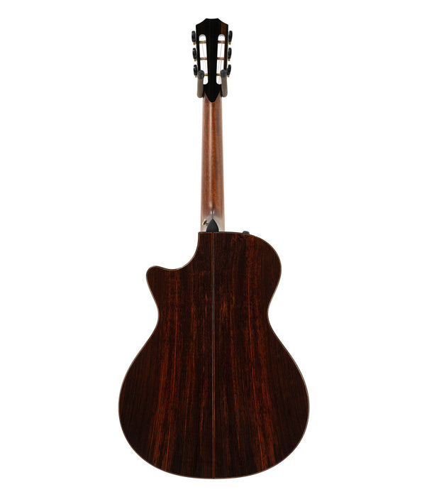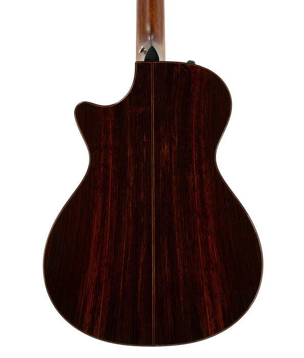 Refined sonic and aesthetic details abound on Taylor's rosewood/spruce 900 Series, whose tone receives a major upgrade from newly added V-Class bracing. The 912ce's compact Grand Concert body is a lap-friendly delight, while the slightly shorter 24 7/8-inch scale length makes bending strings and fretting chords even easier. The new bracing scheme delivers improvements to volume and sustain, making this small-bodied guitar a powerhouse in both practice and performance situations. Tone-optimizing features include customized wood thicknesses for the Grand Concert shape, along with protein glues for the bracing and bridge and a thin (3.5 mil) gloss finish. The result is a guitar that's incredibly responsive to a light touch, with impressive midrange warmth and sustain. Between the balance, articulation and broad tonal range, fingerstyle players will love exploring the guitar's sonic palette. The guitar ships with ES2 electronics and a Venetian cutaway in a Taylor deluxe hardshell case.