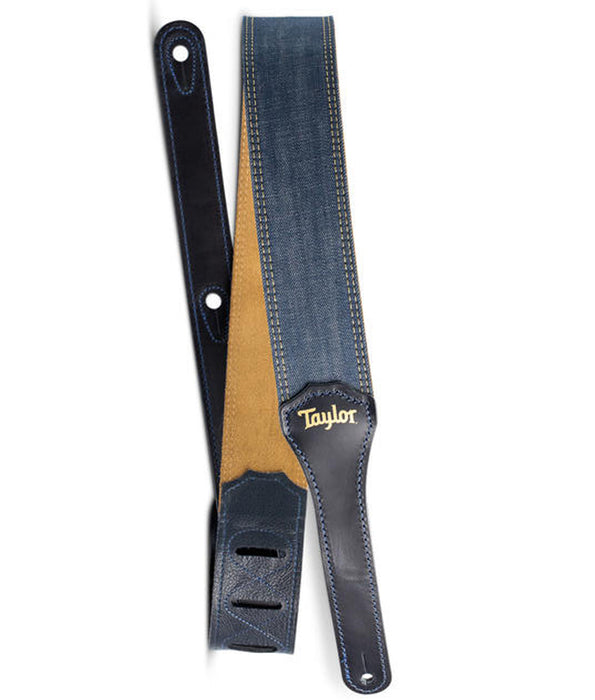 The Taylor Blue Denim Guitar Strap is a perfect harmony of leather and cotton, double-stitched with precision. At 2" wide, this strap provides comfortable support on the shoulder with enough freedom to let you move while you play. It also features a gold embossed Taylor logo and is a true American standard strap. Made in the USA.