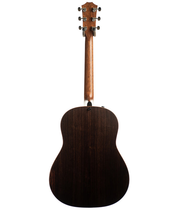 The Builder's Edition 717e Grand Pacific builds on a long tradition of rosewood/spruce dreadnoughts but breaks new ground with an entirely new Taylor sound. The round-shoulder dreadnought shape, featuring Taylor's award-winning V-Class bracing, produces warm, seasoned acoustic tone in which individual notes overlap and blend smoothly together, while the low-end power common among dreadnoughts boasts greater clarity here. As a Builder's Edition model, the 717e also sports an array of premium, player-friendly features: chamfered body edges, rolled fretboard edges, and a new compound-carve neck profile, whose contours match the natural adjustments in the player's hand position when moving up and down the fretboard. Even the bridge design was refined to add a more ergonomic feel for the player's pick hand.