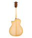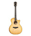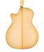 This Custom Grand Auditorium acoustic-electric boasts back and sides of stunningly figured Big Leaf maple accented with contrasting Hawaiian koa. A richly textured bearclaw spruce top and tone enhancing V-Class bracing round out the package, adding up to a vibrant yet warm tone profile that reflects each player's distinctive touch. Figured koa is featured in the beveled armrest, backstrap, heel cap, backstrip and body/soundhole binding, along with koa purfling along the fretboard and peghead plus a koa tail strip. Other visual appointments include a green abalone rosette with matching Reflections fretboard inlays, polished bronze tuners, dark-stained bone bridge pins, and a striking glossy Antique Blond finish for the entire guitar.