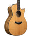 This guitar is a special custom built Grand Auditorium that we selected woods for with Andy Powers, Taylor CEO; during a factory visit. The goal was to create a guitar with a rich full sound with a lot of personality and unique aesthetics. A sharp florentine cutaway, artist fretboard inlays and dove inlay on the headstock a clear signs that this guitar is not a normal stock guitar.