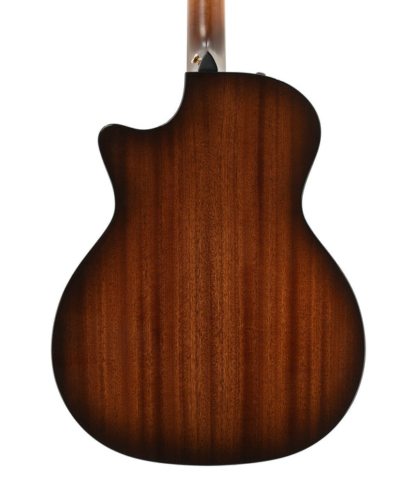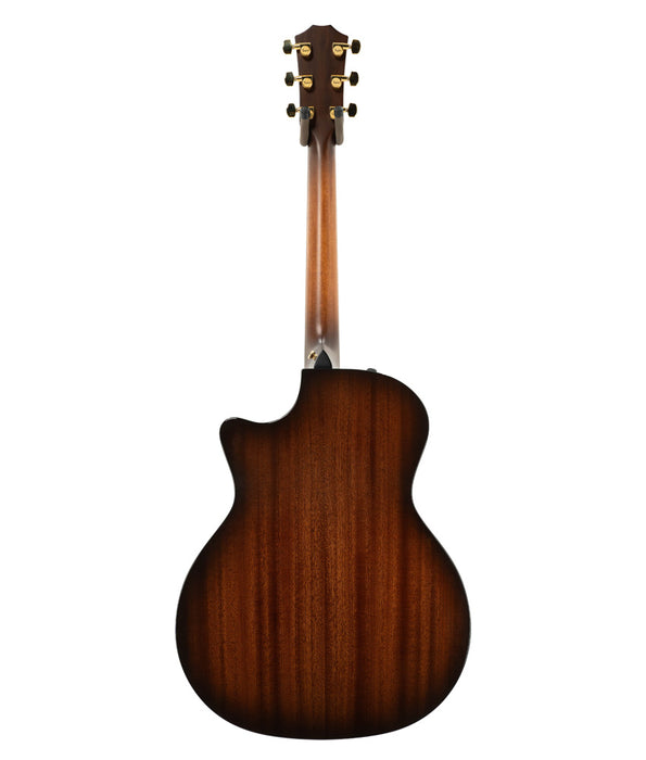 This 50th Anniversary limited-edition 314ce is one of a suite of commemorative models crafted to celebrate Taylor's milestone 50th year. Taylor brought several premium updates to our popular cutaway Grand Auditorium 314ce, starting with a torrefied spruce top, which adds an extra splash of responsiveness and warmth to its musical personality. Taylor's special roasting recipe for the top slightly darkens the Sitka soundboard, and enhanced that vintage character with an artfully sprayed shaded edgeburst around the body and neck. A firestripe faux-tortoise pickguard adds a bold visual touch, while other complementary aesthetic details include gold Taylor tuners and ebony bridge pins with gold acrylic dots. Other featured appointments include a 3-ring rosette with contrasting black and white purfling, black body binding, Gemstone fretboard/peghead inlays in Italian Acrylic, and a rich full-gloss body. The guitar also sports our freshly designed commemorative 50th anniversary label. Sonically, between the torrefied top and our V-Class voicing architecture, this Grand Auditorium will delight players with its range-roving musical versatility, serving up signature Taylor balance and clarity with pleasing warmth, projection and sustain. And the trademark playability of our neck promises to pull players in from the first strum. Onboard ES2 electronics