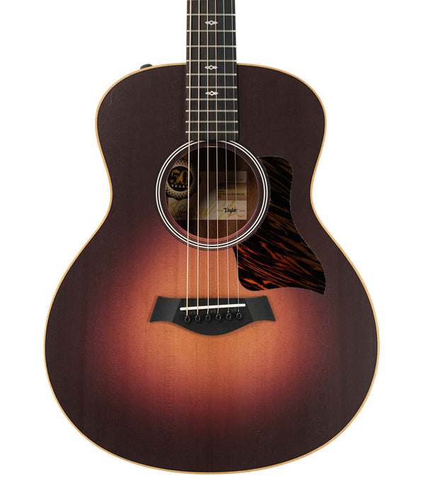 To commemorate Taylor's 50th anniversary, Taylor revamped the best-selling GS Mini with a fresh look and added visual touches. The 50th Anniversary GS Mini-e Rosewood SB LTD features a torrefied Sitka spruce top paired with layered Indian rosewood back and sides, serving up a warm, played-in character to go with its bold projection and balanced tone profile. With its scaled-down Grand Symphony body shape and hand-friendly 23-½-inch scale length, this limited-edition GS Mini delivers unmatched playing comfort without sacrificing rich tone. Celebratory aesthetic upgrades include a striking vintage sunburst top color treatment, a distinctive firestripe pickguard, diamond fretboard inlays, gold tuners, ebony bridge pins with gold dots and a commemorative interior label. All together, this GS Mini is the ideal musical companion for travel, at-home play, jam sessions and more. It comes equipped with ES2 electronics. Production will be limited to 1,974 guitars worldwide.