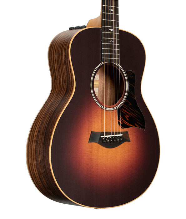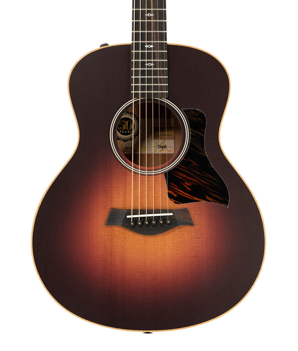 To commemorate Taylor's 50th anniversary, Taylor revamped the best-selling GS Mini with a fresh look and added visual touches. The 50th Anniversary GS Mini-e Rosewood SB LTD features a torrefied Sitka spruce top paired with layered Indian rosewood back and sides, serving up a warm, played-in character to go with its bold projection and balanced tone profile. With its scaled-down Grand Symphony body shape and hand-friendly 23-½-inch scale length, this limited-edition GS Mini delivers unmatched playing comfort without sacrificing rich tone. Celebratory aesthetic upgrades include a striking vintage sunburst top color treatment, a distinctive firestripe pickguard, diamond fretboard inlays, gold tuners, ebony bridge pins with gold dots and a commemorative interior label. All together, this GS Mini is the ideal musical companion for travel, at-home play, jam sessions and more. It comes equipped with ES2 electronics. Production will be limited to 1,974 guitars worldwide.