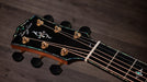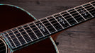 Visually, the Gold Label 917e is unmistakably high-end. Premium 900 Series appointments include shell, mother-of-pearl, and paua inlays throughout the fingerboard, rosette, body, and headstock. Additional Gold Label details-such as bone bridge pins with green abalone dots, an engraved pickguard, a script Taylor logo, a Curve Wing bridge, and a Continental Deluxe headstock inlay-complete the guitar's refined vintage aesthetic.