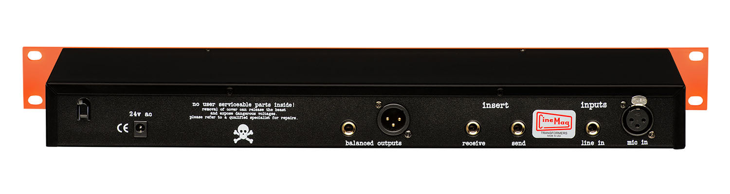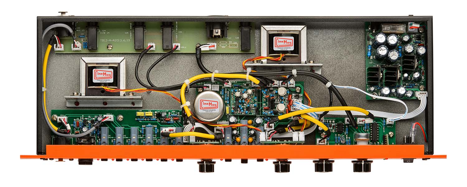 2 MEG OHM TRUE HI-Z INPUT ON FRONT PANEL SENDS INSTRUMENT SIGNAL THROUGH ENTIRE CIRCUIT INCLUDING BOTH CINEMAG TRANSFORMERS AND THE DISCRETE OPAMPS. GREAT FOR GUITARS, BASS, KEYBOARDS AND OTHER INSTRUMENTS THAT HAVE A 1/4″ OUTPUT JACK