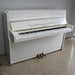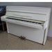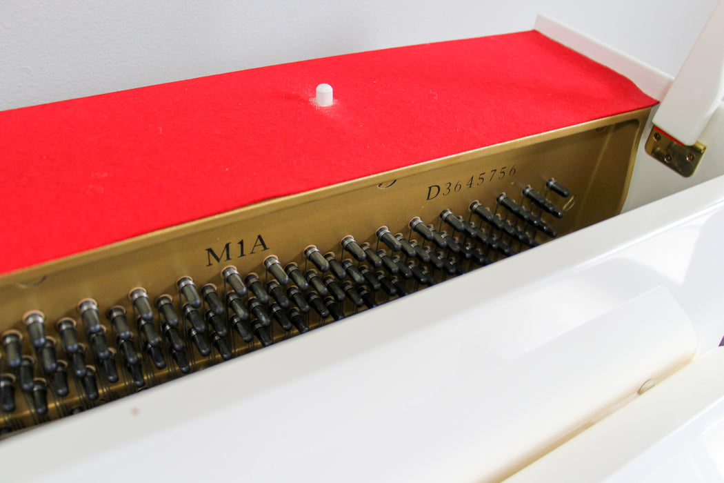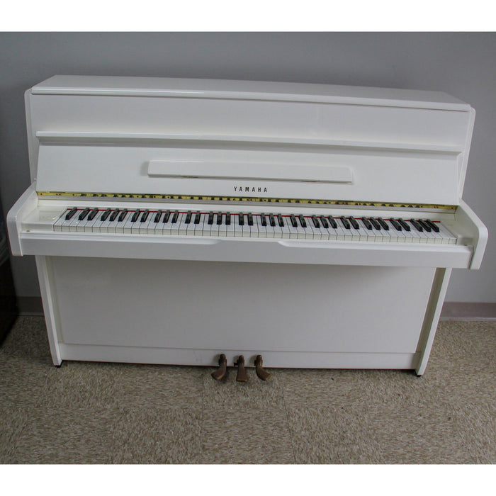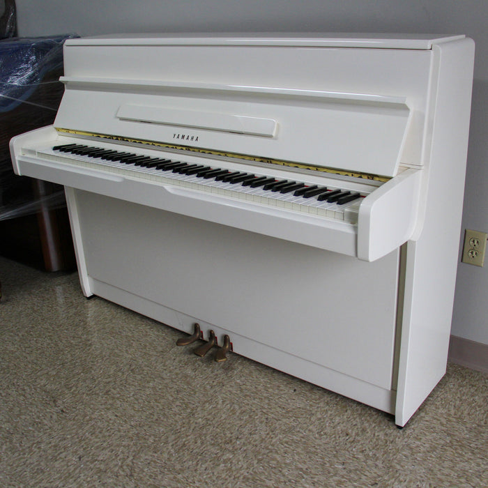 Beautiful Yamaha M1A Upright Piano. This piano features a lovely polished white finish that is in great condition. The continental console style is incredibly popular among students and homeowners for its compact size and shape. The toeblock-less and angular design allows for easy access around the piano. Yamaha pianos are well-known for a lovely brighter tone and excellent touch. This size piano is the most common of the vertical pianos sizes. Console pianos, which have a compact action (shorter hammers than a large upright has), but because the console's action is above the keys rather than below them as in a spinet, a console almost always plays better than a spinet does. Console pianos are a few inches shorter than studio models.