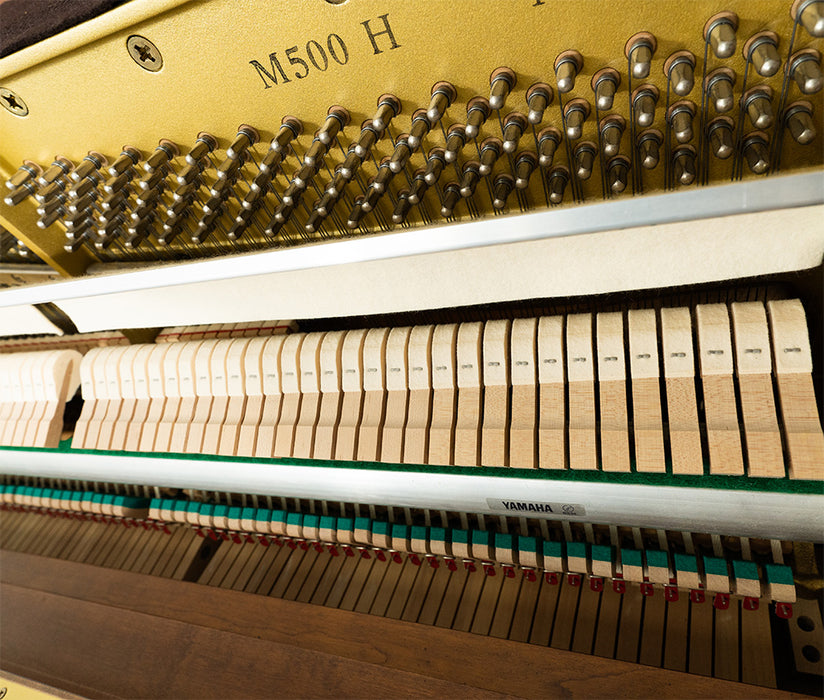 Sitting at 44" tall, the Yamaha M500 piano is equipped with a large soundboard and long strings which adds a high quality tone and vast range. This model originates in Thomaston, GA.