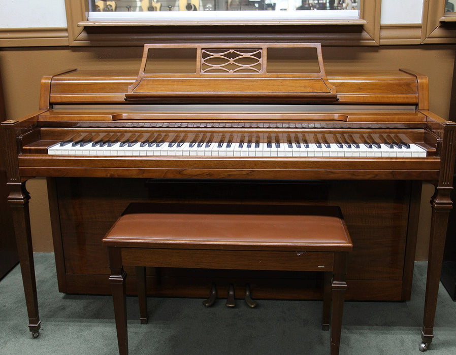 This Pre-Owned Yamaha Spinet Upright Piano features clean lines with classic styling and good action. Well cared for and throughly inspected this spinet sized piano will fit in spaces that other pianos can't and bring years of joy thanks to Yamaha's quality construction. Well priced and perfect for the student pianist or the veteran musician short on space that can appreciate the warm tone the shorter scale of the spinet offers. Oak finish with bench.