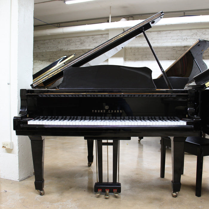 A beautiful black polished small grand piano, 5'2" long, Young Chang Professional Artist series, built in South Korea and kept in impeccable condition & regularly tuned. Action and hammers are in great condition and the piano has a large and expressive tone.